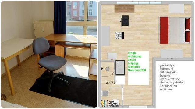 The 1-room apartment is located directly in the city centre of Markranstaedt and has