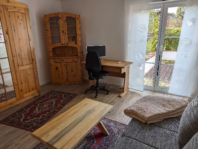 Wir bieten für eine Studentin oder einen Studenten eine kleine separate Wohnung mit Terrasse und Einbauküche, nur an Nichtraucher. Sehr helles Wohnschlafzimmer mit Schlafcouch, großem Kleiderschrank, Schreibtisch, verfügt über einen Internetanschluss und hat große Terrassentüren. Voll eingerichtete Küche mit Kühlgefrierschrank, Kochfeld, Mikrowelle. Badezimmer mit Dusche, WC, Waschbecken, Schrankregal und großem Spiegelschrank. Wäscheraum im Keller sowie Kellermitbenutzung. Stellplatz direkt am Haus. Nur 3 Minuten Fußweg zum Agilis, der in 10 Minuten in Bayreuth am Hauptbahnhof ist Von dort gehen Busse zur Universität. . Ganz ruhige Wohnlage, wo man draußen auf der Terrasse arbeiten und lernen kann ohne Störung. Wiesen und Wald gleich um die Ecke. Nebenkosten liegen ca bei 120 Euro. Es gibt im Ort keinen Supermarkt, nur in den Nachbarorten ca. 5km entfernt. Aber es gibt eine Tankstelle mit Shop. Haustiere eventuell erlaubt, nur nach Vereinbarung.\\r\\nDie Wohnung liegt im Erdgeschoss eines Drei - Parteien - Hauses. Die Vermieter wohnen ebenfalls im Erdgeschoss. Das ganze Haus wird mit Wärmepumpen beheizt.